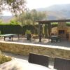 Terraza exterior con mobiliario, piscina con zona de solárium y barbacoa. Todo en una planta. Se admiten mascotas. La piscina es compartida con otra casa que hay dentro de la propiedad.